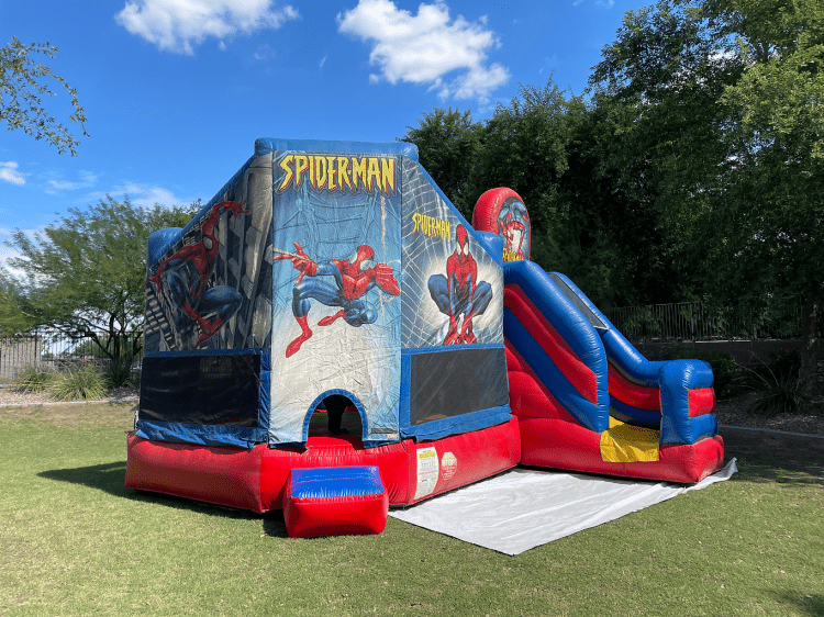 Do you want Spider Man at your birthday party? Rent our Spider Man bounce house with slide!